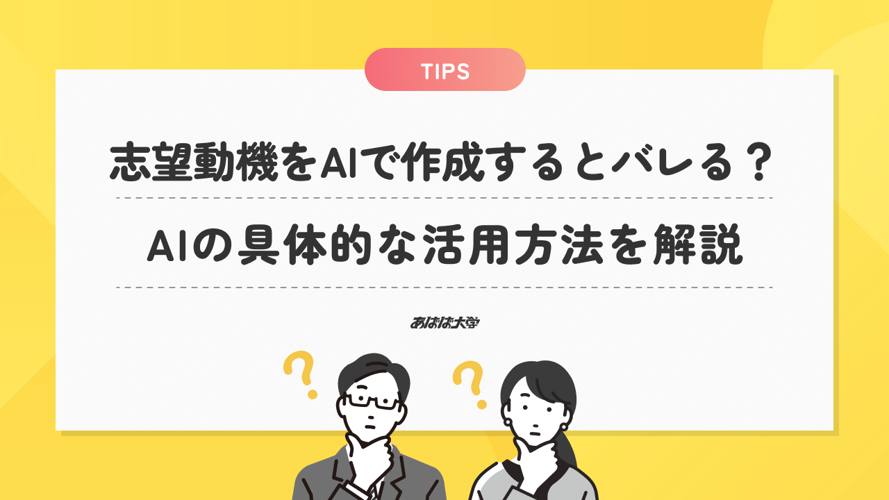 ESで何度も書かなければいけない「志望動機」。数十社も受ける多忙な就活生にとっては、AIで作成できないかな、と思ったことも多いのではないでしょうか。しかし、志望動機はAIで作成すると採用担当者にバレてしまうではないかと不安な人も少なくないでしょう。そこで、今回は効率的に志望動機を作成するために、AIを志望動機に活用する具体的な方法を解説します。