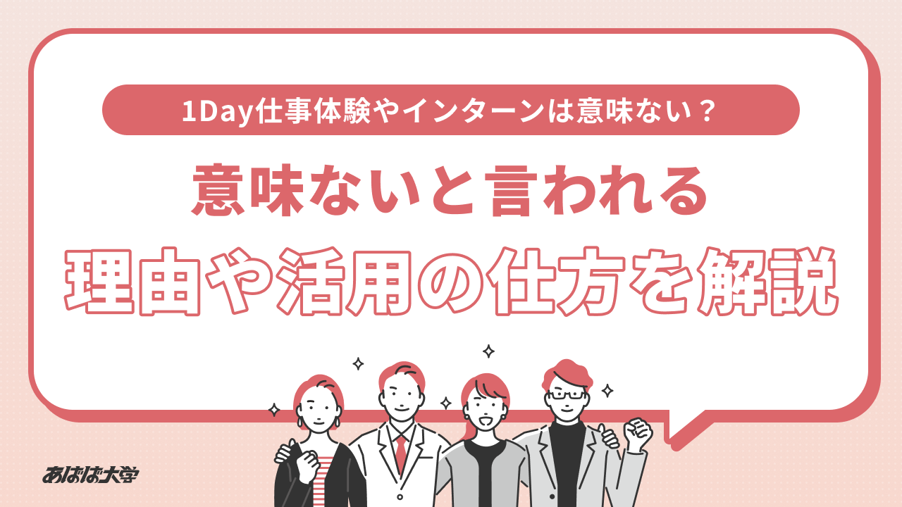 「1Day仕事体験や1Dayインターンは意味ない」と言われることもありますが、参加目的によって価値は大きく変わります。