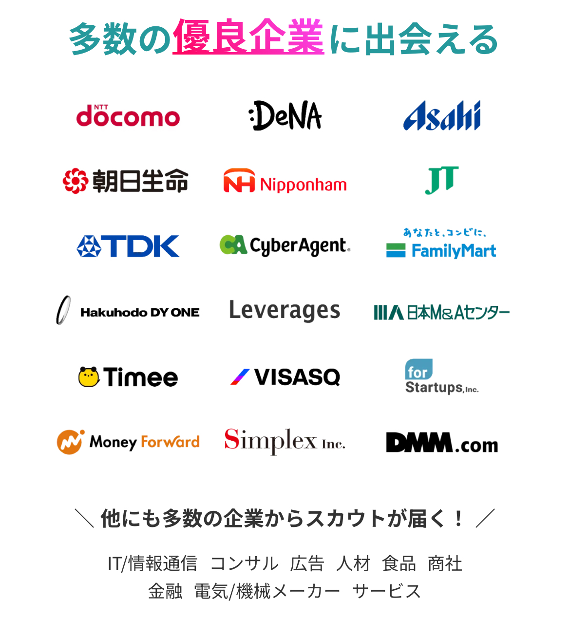 ABABAでは最終面接まで進んだ頑張りが評価されて、優良企業25社からスカウトが届きます。もし選考途中で落ちてもそこまでの頑張りが無駄になりません。